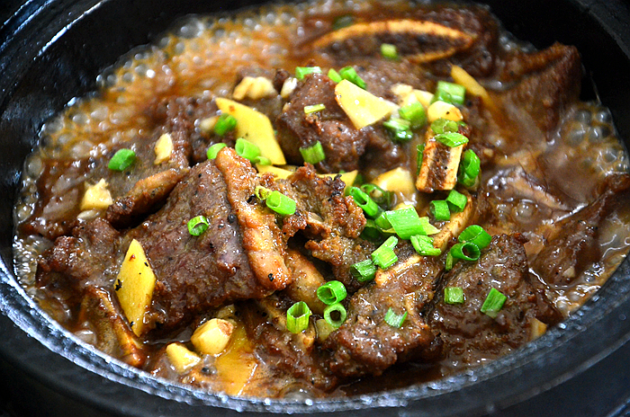 牛仔骨,端上来还在噗噗的冒着气泡,热乎乎的吃很舒畅,肉质嫩而紧实,有嚼劲又不会难咬,肉香浓郁,回味无穷。