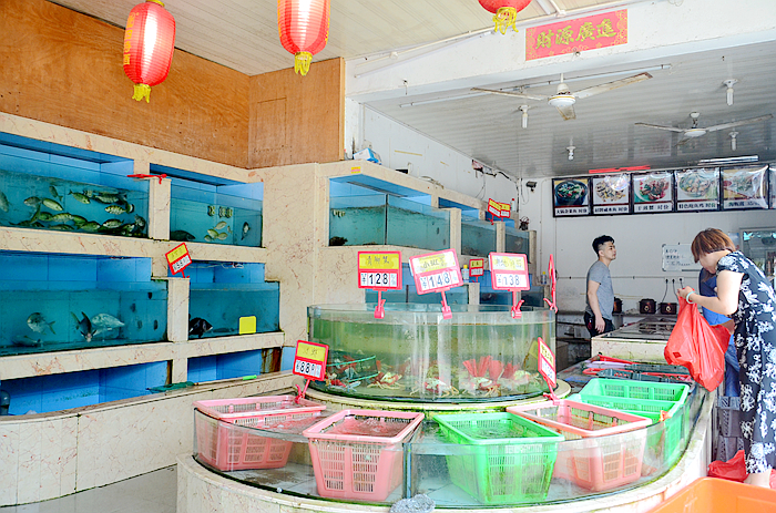 现抓现捞的小海鲜养在海鲜池中,等待着食客的挑选,明码实价,吃的新鲜吃的放心。