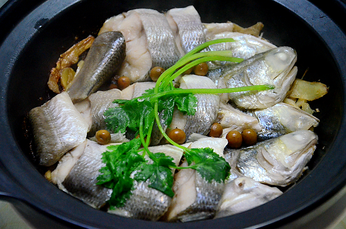 砂锅炝伍鱼,伍鱼又名午鱼,在闽南自古流传着一句顺口溜,“一午二红鯋,三鲳四马鲛,五鮸六加腊”,这是大家总结吃鱼的经验,给传统海鱼的排名,午鱼排名第一,可见这鱼的好吃和受喜爱程度。炝是一种烹制海鲜的独特技法,砂锅底层垫着姜片,放入整块的鱼肉,在加入盐、破布子等调料烹制,保留了食材的原汁原味,又增添了恰到好处的滋味。午鱼肉质细腻娇嫩,胶质丰富,滋味鲜美无比,姜、破布子等调料的滋味更是锦上添花,令人惊艳。