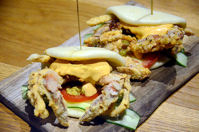 香辣软壳蟹刈包,用面饼包着整只的软壳蟹,大口咬下,十分满足,刚才软壳蟹没吃过瘾,现在再来大快朵颐!