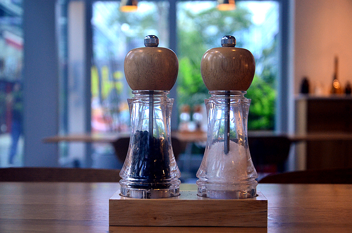 餐厅内有两层,一层有厨房和吧台,还有设计独到错落有致的座位,环境很舒适。