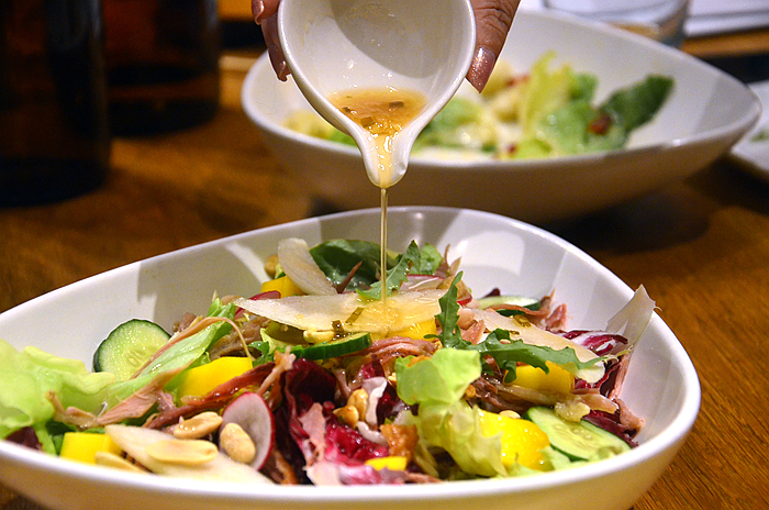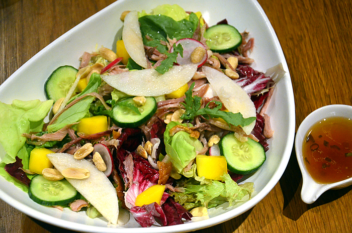 烤鸭沙拉,有多种新鲜的蔬菜和水果,还有又香又嫩的烤鸭,加入秘制酱汁,更是美味又健康。