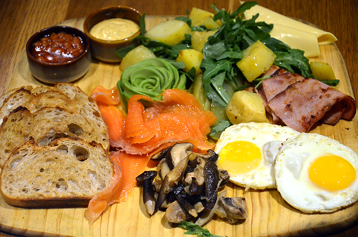 经典早午餐拼盘,好漂亮的一个拼盘呀,色彩丰富,食材多样,一看就让人很有食欲,有谷物类、鱼肉类、肉类、菌菇类、蛋类、蔬菜类、水果类,搭配的十分齐全,营养均衡,好吃健康,吃上一份,十分满足。