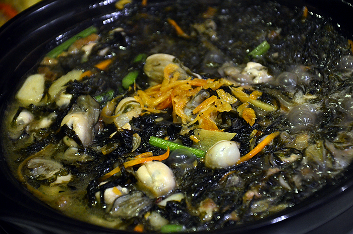 海蛎紫菜煲,这是厦门人很喜爱的煲,海蛎饱满肥美,紫菜清香嫩滑,口感滋味都很棒。