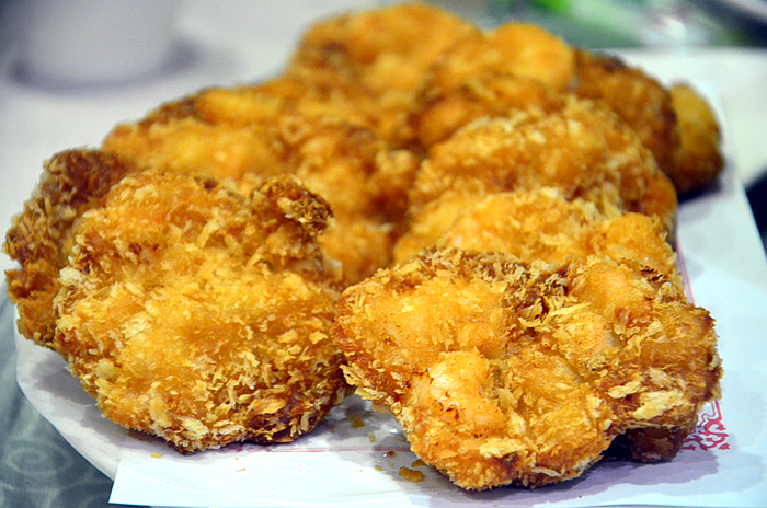 炸虾饼,色泽金黄诱人,口感外酥里弹,里面有好多饱满的虾仁,真材实料,香酥鲜美。
