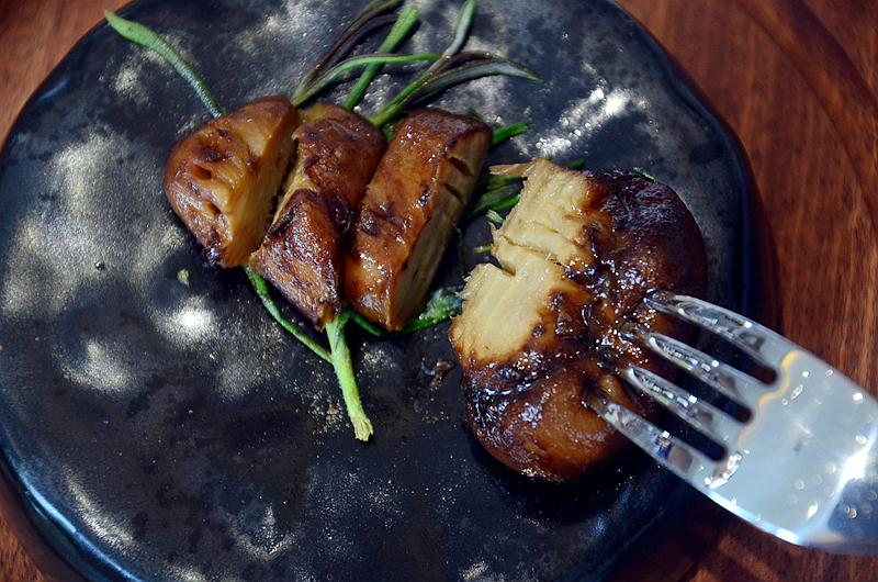 用刀叉切开,汁液丰富,香气更是浓郁,送入口中,松茸特有的浓香溢满口腔,奇妙的滋味无与伦比。