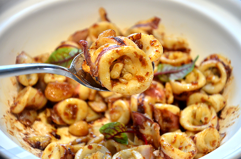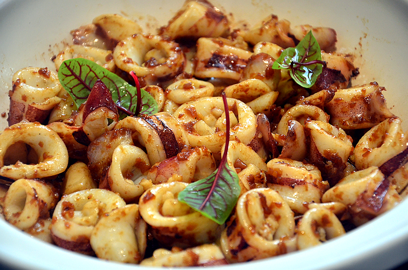 香焗有膏小管,这道菜借鉴了粤菜,选用优质有膏小管,秘制酱料烹制而成,口感嫩脆弹牙,滋味鲜美,内膏香浓,赞不绝口。