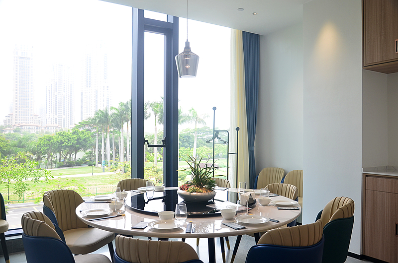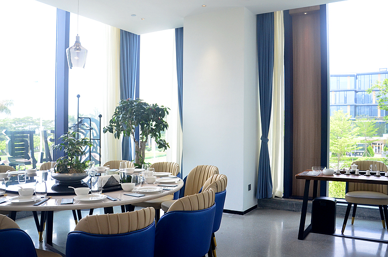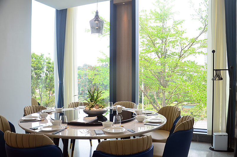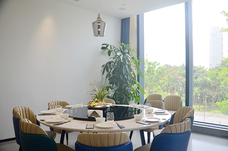 有好多包厢,自然采光,窗外是美丽的绿地公园,赏心悦目。