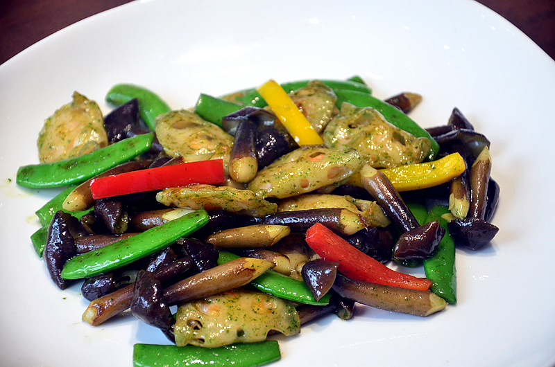 脆皮松茸炸豆排,色泽金灿灿的很诱人,外皮香脆,里面细嫩,豆香浓郁,还有松茸的清香,爱不释手。