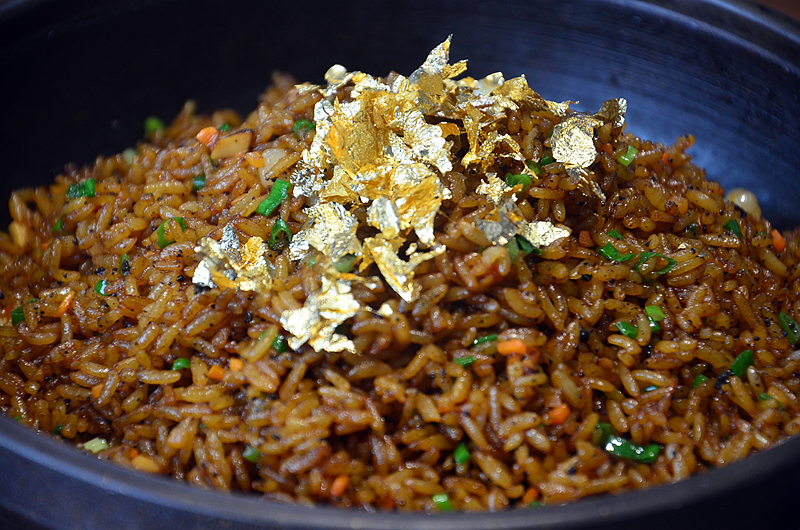 金箔松露炒饭,一端上来大家就震惊了,好多食用金箔在炒饭上舞动,金光闪耀,奢华大气,精选来自五常黑土地的海皇稻花香米,米粒均匀,色泽光亮,饱满圆润,搭配营养丰富的意大利黑松露,炒的均匀入味,一勺舀下,香气扑鼻,送入口中,松软弹牙,芳香爽口,菌香浓郁,一口入魂,这可能是我吃过最好吃的炒饭。