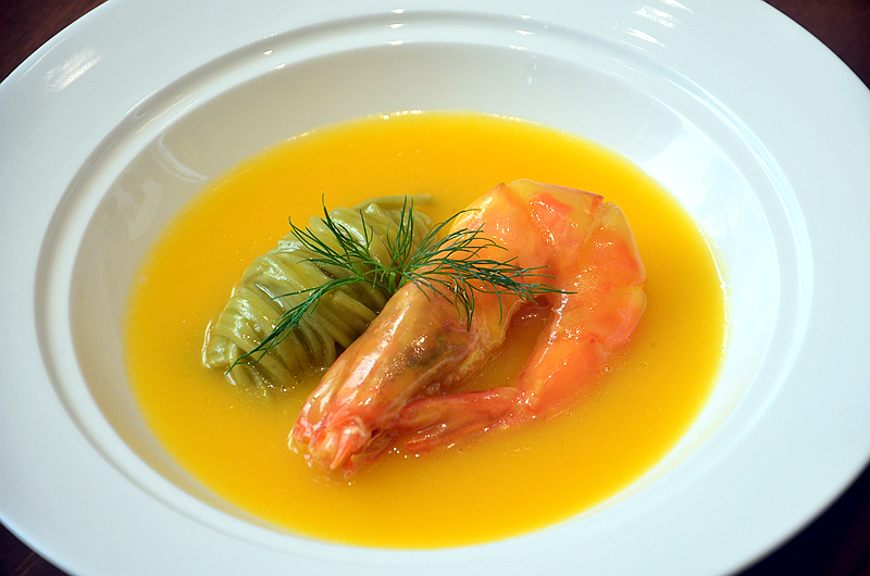 芝士焗大虾,摆盘精美,红彤彤的大虾,嫩黄的汤汁,一看就让人食指大动,虾肉紧实弹牙,鲜美无比,面条柔软筋道,汤汁鲜香醇厚,连料带汤吃光光还意犹未尽。