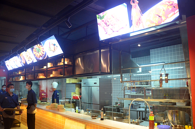 透明厨房中大厨忙碌的烹制着美食,明亮整洁,一目了然。