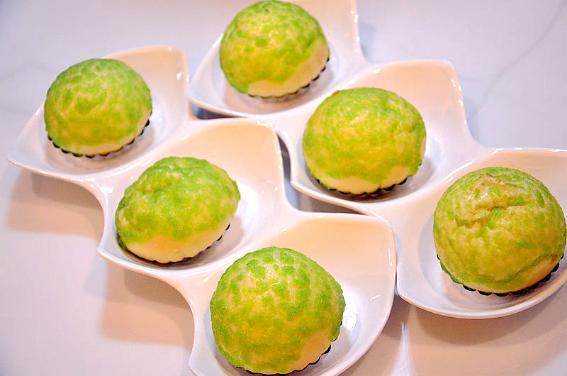 橙晓屋松茸包,嫩黄的包子点缀的翠绿,仿佛森林中的小蘑菇,口感蓬松柔软,内馅咸香可口,吃完一个还意犹未尽,再加点一份!