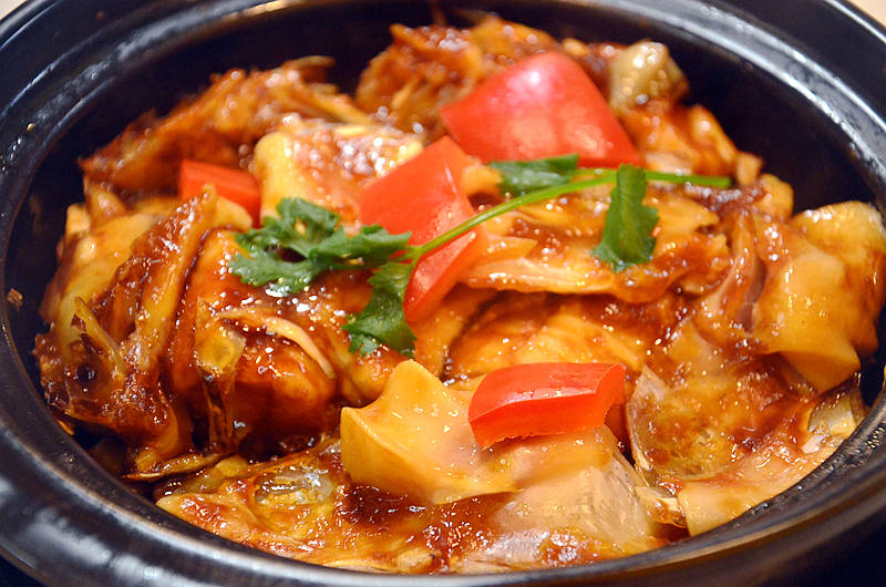 啫啫焗鱼头,鱼头细嫩幼滑,胶质丰富,烹制的有滋有味,口感味道俱佳,一会就被瓜分一空。