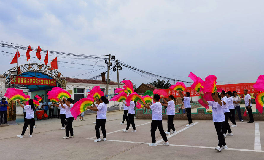 ▲群众在芦家窑村党群服务中心门前小广场进行娱乐活动。放猪江湖 摄