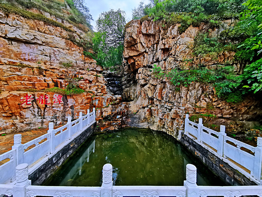 这里的老龙潭传说神秘,水深不可测,潭水之上的峭壁还长有一棵茂密的树,恰巧遮盖于潭水。