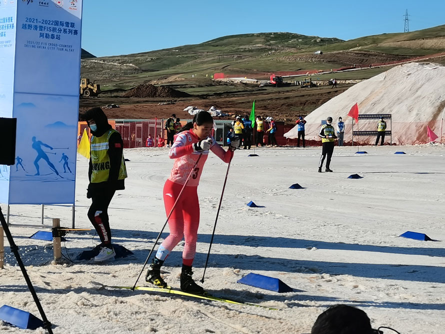国际雪联越野滑雪中国积分赛属于国际专业的越野滑雪赛事,越野滑雪国家集训队的运动员需要在系列赛事中拿到一定积分后,才可以获得进入冬奥会的资格。阿勒泰作为2021-2022赛事的首站,要在炎热的5月保证赛事用雪,赛事组在储雪、铺雪工作上可谓是做足了功夫。承办单位阿勒泰市人民政府在进行储雪工作时,特别邀请北京储雪专家亲临现场对储雪工程进行指导,再根据专家勘察阿勒泰市萨尔阔布场地的实际情况后,将场地储雪工程有序的进行开展。储雪铺雪工作于3月12日开始开工,雪道铺设距离长3公里,共5个储雪单元,共完成储雪量7万多平方。