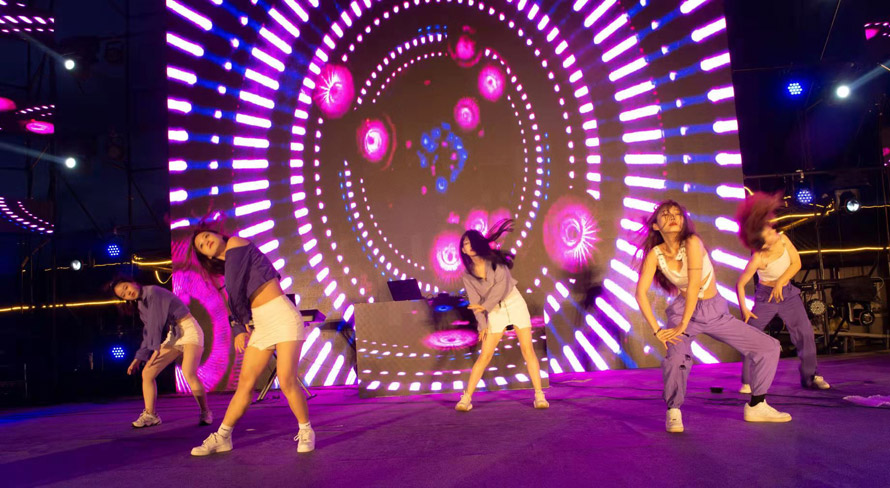 夜色降临后,五光十色的灯光舞美瞬间“点燃”整个山顶,伴着震天撼地的动感音效,巅峰消夏夜在轩辕台拉开帷幕:DJ打碟酷到爆 ,乐队live燥起来,韩风舞蹈炸裂全场。洛桑、迪克牛仔模仿秀惟妙惟肖,让人恍然以为大咖亲临。中华特技达人的绝活引人惊叫连连,大头儿子小头爸爸情景剧表演惹得小朋友们笑声不断,祈福车神的朝拜仪式将平安祥瑞带给现场每个人。
