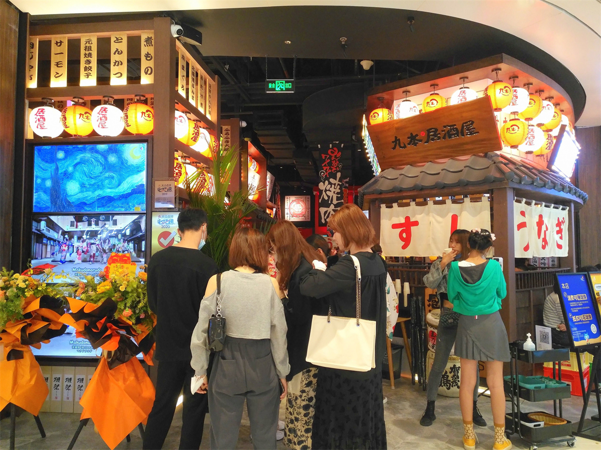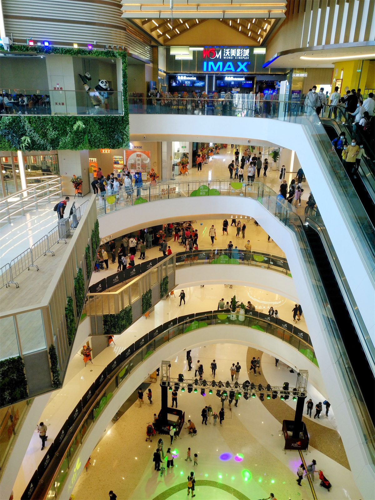 中秋时节,正是阖家团圆的时候,商城里各家餐饮都十分红火。要想在天街吃饭,真需要有点耐心,等位叫号。商城毗邻大学城,因此好玩的东西不少。周边居民遛娃、购物、逛街,可以说是应有尽有。在商城任意消费还可以积累珑珠,根据珑珠的多少享受消费折扣和不同时间的免费停车。
