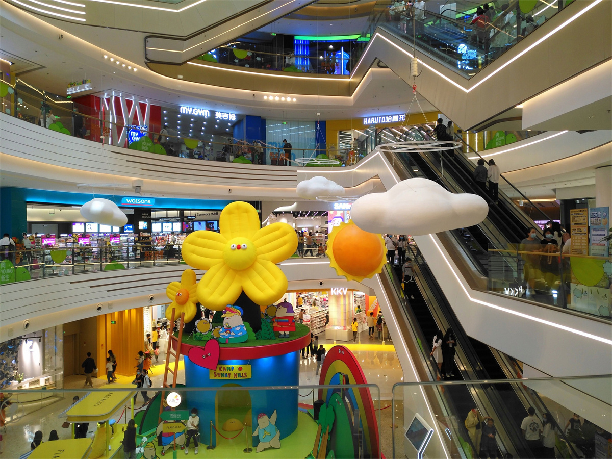商城楼层主打的商品各不相同。地下一层和五层以美食为主;品牌、时尚商品汇聚在一、二层;三层是孩子们的天下;四层和六层以健身美容、餐饮、娱乐为主;六层的虚拟体验馆是年轻人最喜欢的地方。整座商城布局凸显了特色美食,尽管有楼层主打美食,但是各个楼层也都分布着地方风味小吃。可以说这里是吃货的天堂。