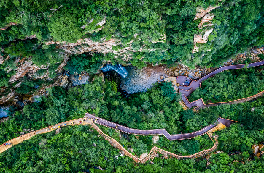 蓟州车神架风景区位于天津蓟州区下营镇,距离首都2小时车程,生态兴则旅游兴,作为旅游目的地,车神架景区近年来在生态保护方面牢固树立绿水青山就是金山银山的理念,助力乡村振兴建设,吸纳当地数百人成为景区员工,进行生态资源保护、生态管理服务等工作,如今,景区内峡谷潭泉、层峦叠翠,成为京津冀旅游人群出行首选。