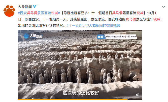 【导游比游客还多!十一假期首日兵马俑景区客流锐减】