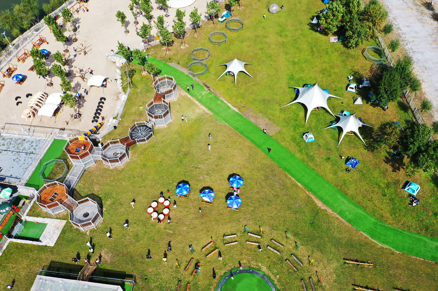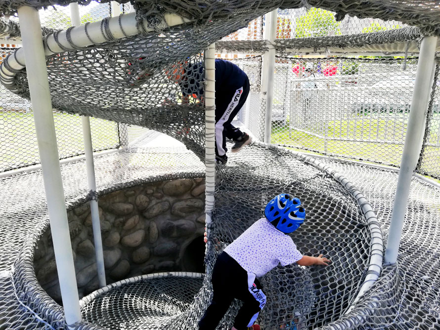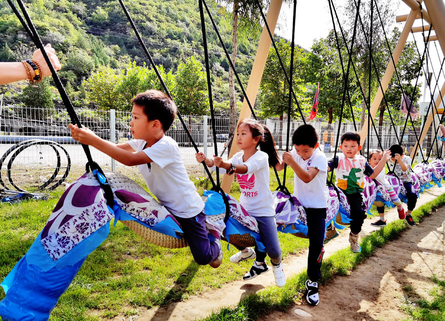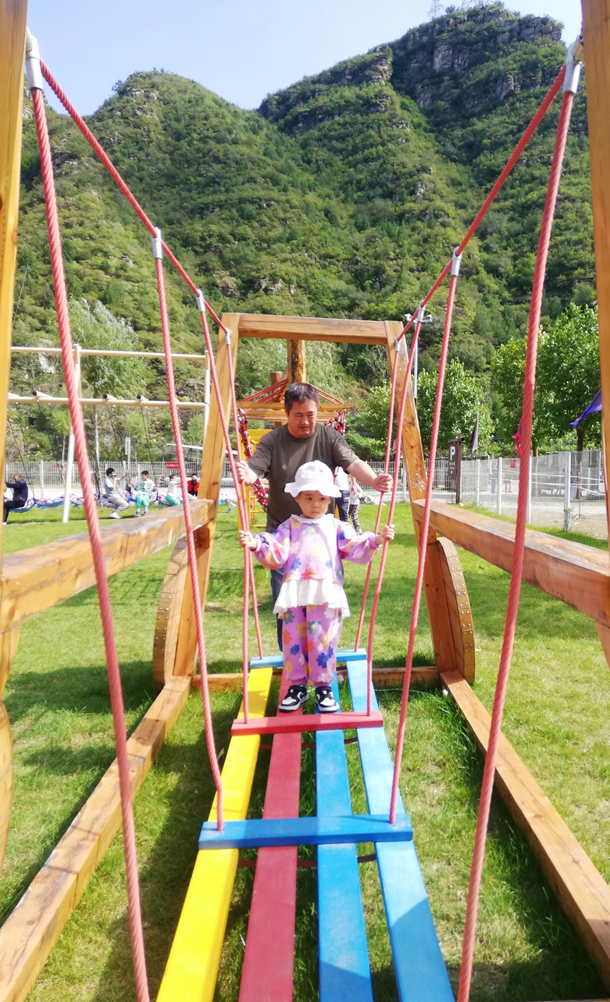 乐园里的设施激发着孩子们好奇的天性,也吸引着孩子们游玩的乐趣。家长们与孩子一起探险攻关,一起地牢逃生,一起荡起秋千,一起绳索攀岩;有的孩子摔倒了,爬起来继续玩,有的项目玩过了,孩子还要继续再玩一遍。