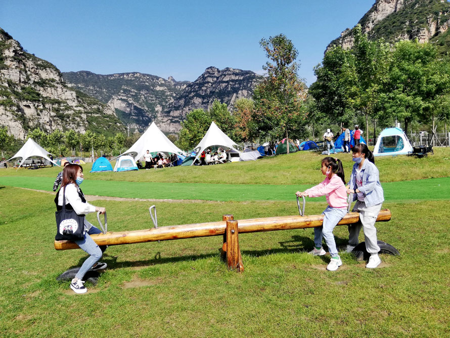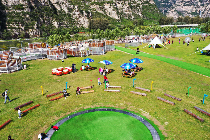 国庆假期首日,各地旅游市场迎来不同程度的客流峰值,与往年不太一样的是,今年亲子游项目更能吸引人们的目光,位于北京房山区乐谷银滩景区东侧的“荆轲藏宝图”亲子乐园,在国庆第一天就迎来近千组家庭,大人孩子一同在乐园里荡秋千、玩滑索、钻地牢、爬滑竿,孩子们在森林魔网里上蹿下跳,寻宝逃生……