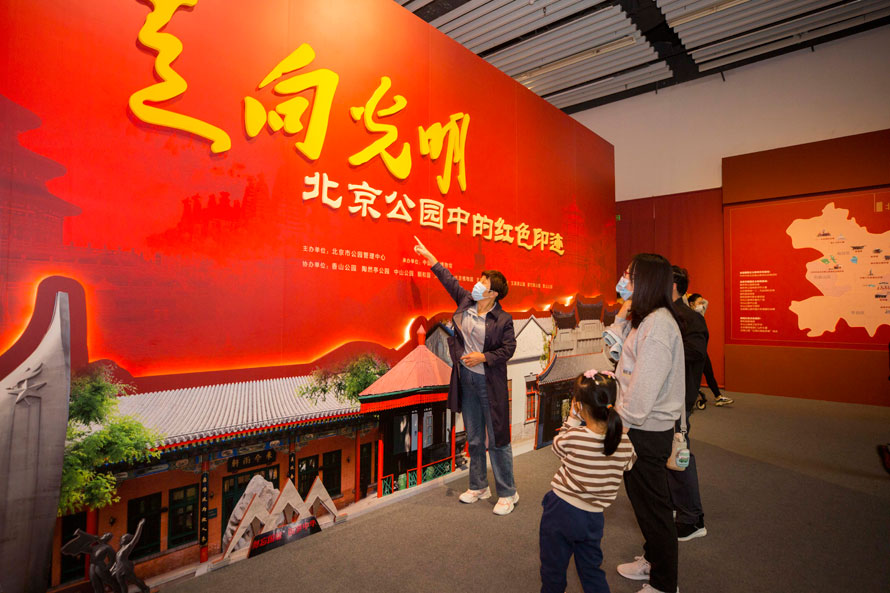 国庆期间,北京市属公园的9处爱国主义教育基地都迎来了众多前来感受红色历史、抒发爱国爱党情怀的游客。中国园林博物馆中《北京公园中的红色印迹》展览在小学生、初中生这些园林小讲师的讲解下更加生动。