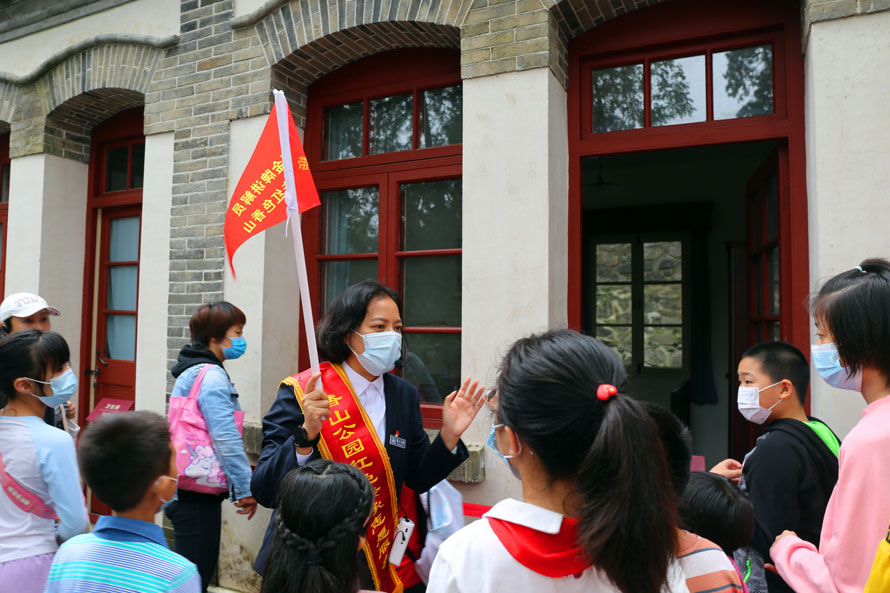 国庆期间,市属公园的9处爱国主义教育基地都迎来了众多前来感受红色历史、抒发爱国爱党情怀的游客。中国园林博物馆中《北京公园中的红色印迹》展览在小学生、初中生这些园林小讲师的讲解下更加生动。玉渊潭公园今天开展“迎国庆颂祖国,学党史敬英雄”主题活动,现场游客及小朋友们共同在中国少年英雄纪念碑前,体验重走红色长征路、瞻仰中国少年英雄纪念碑、聆听建碑历史、制作鲜花花束向中国少年英雄纪念碑致敬,朗诵《请党放心,强国有我》发出青春誓言等,分享学习党史感悟。10月3日至5日,香山公园首次策划开展“我眼中的红色香山——香山革命纪念地旧址深度游”活动。今天,提前通过线上招募的30组家庭在北京市先进工作者、首都金牌讲解员贾莉的带领下,参观了香山革命纪念地八处革命旧址以及沿途景观。在双清别墅内进行了升国旗仪式,共同诵读《七律•人民解放军占领南京》的诗篇、唱响《我和我的祖国》歌曲,还亲手绘制一幅“我眼中的红色香山”图画;同时,到革命旧址集章打卡,品尝香山公园依据老一辈革命家爱吃的菜肴开发的“红色经典套餐”和一碗为祖国母亲庆祝生日的长寿面,饭菜虽然简朴,但大家都吃的津津有味。“以前我们经常来到双清别墅参观,但这次活动在讲解员的带领下,我们更加系统的了解了这里,以前没有注意到的一些细节也更加清晰,特别是在国庆节假期这样特殊的时间,无论是从升国旗仪式还是绘画双清的活动,都是非常难得的体验,让孩子上了一堂生动的爱国主义教育课。”活动参与者许先生说道。