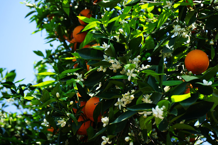 在以前果农为了下一年脐橙产量不受到影响,都习惯在2月底前全部采摘,进行人工保鲜,为了确保果子不腐烂,往往进行药水喷洒后进行储存。随着人们对健康食品越来越高的追求,人工保鲜已经不符合市场需求要求,为了解决这个难题,果农生出一个大胆的想法,能不能挂树保鲜保鲜呢?经过多年探索和实验,终于形成了现在花果同树奇观。