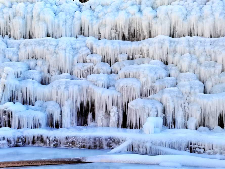 此外,作为山岳型休闲度假胜地,乐谷银滩的峡谷山川也已呈现出一个晶莹剔透的童话世界,玉树琼枝,冰雪挂川,到处美不胜收。拾步上山,遍野的荆棘丛上洁白晶莹的霜花,山崖上的冰洞银光闪烁,放目远望,群山峻岭飞雪,草木山石水墨尽染,无尽妖娆。