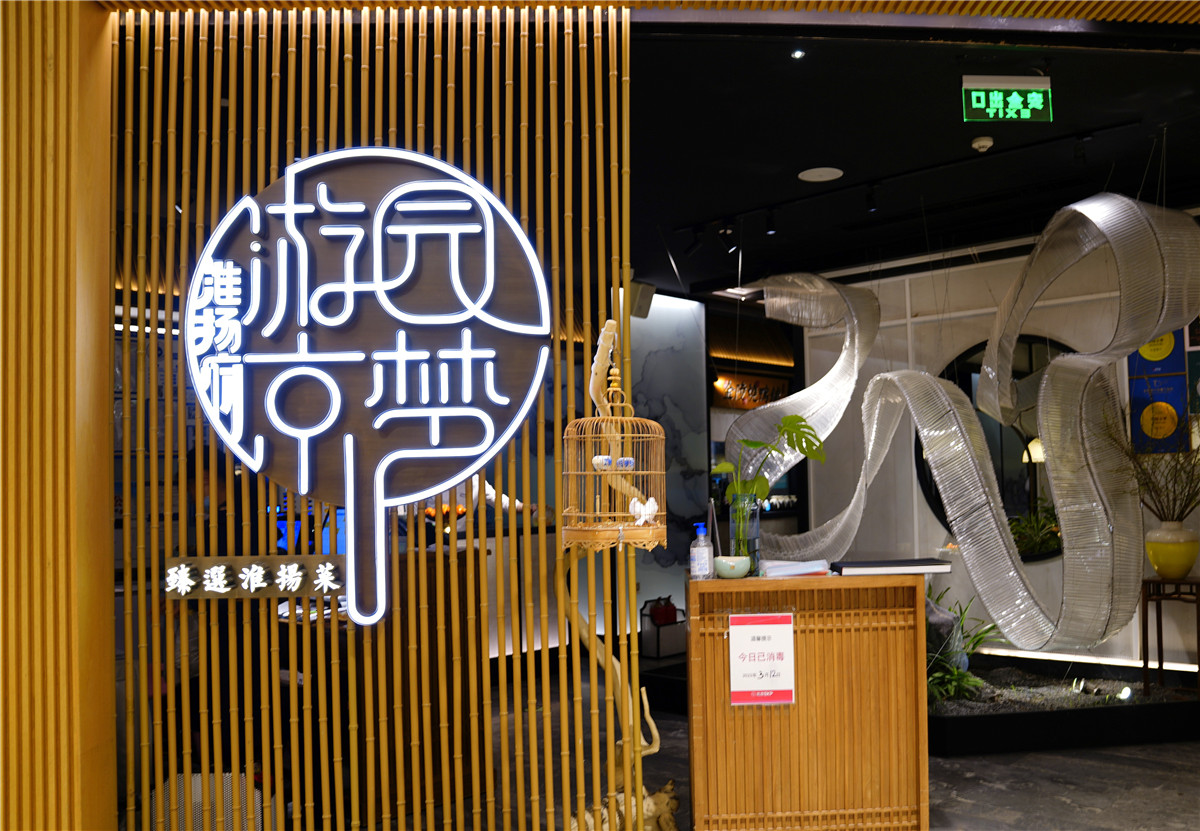 听说京城有一家淮扬菜馆,一年四季,都有不同创意的美食,让食客享受四季轮回的美味大餐。于是带着好奇心走进了位于京城CBD商圈的SKP商场六层的游园京梦,虽然已经过了饭点,门前等位的食客仍旧排着长队。