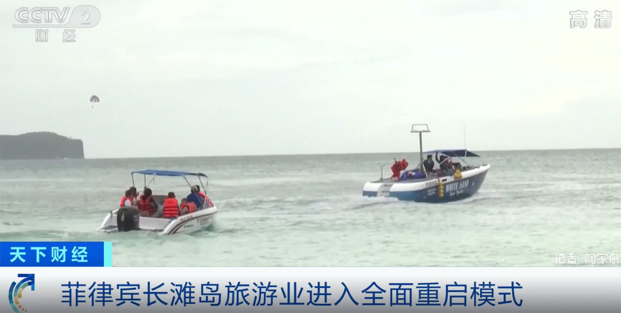 记者 陶家乐:这里是长滩岛的一个栈桥,可以看到前来坐船出海的游客很多,这里的工作人员介绍说,从上午9点到下午6点,会不间断地有国内外的游客前来乘船参加出海活动。