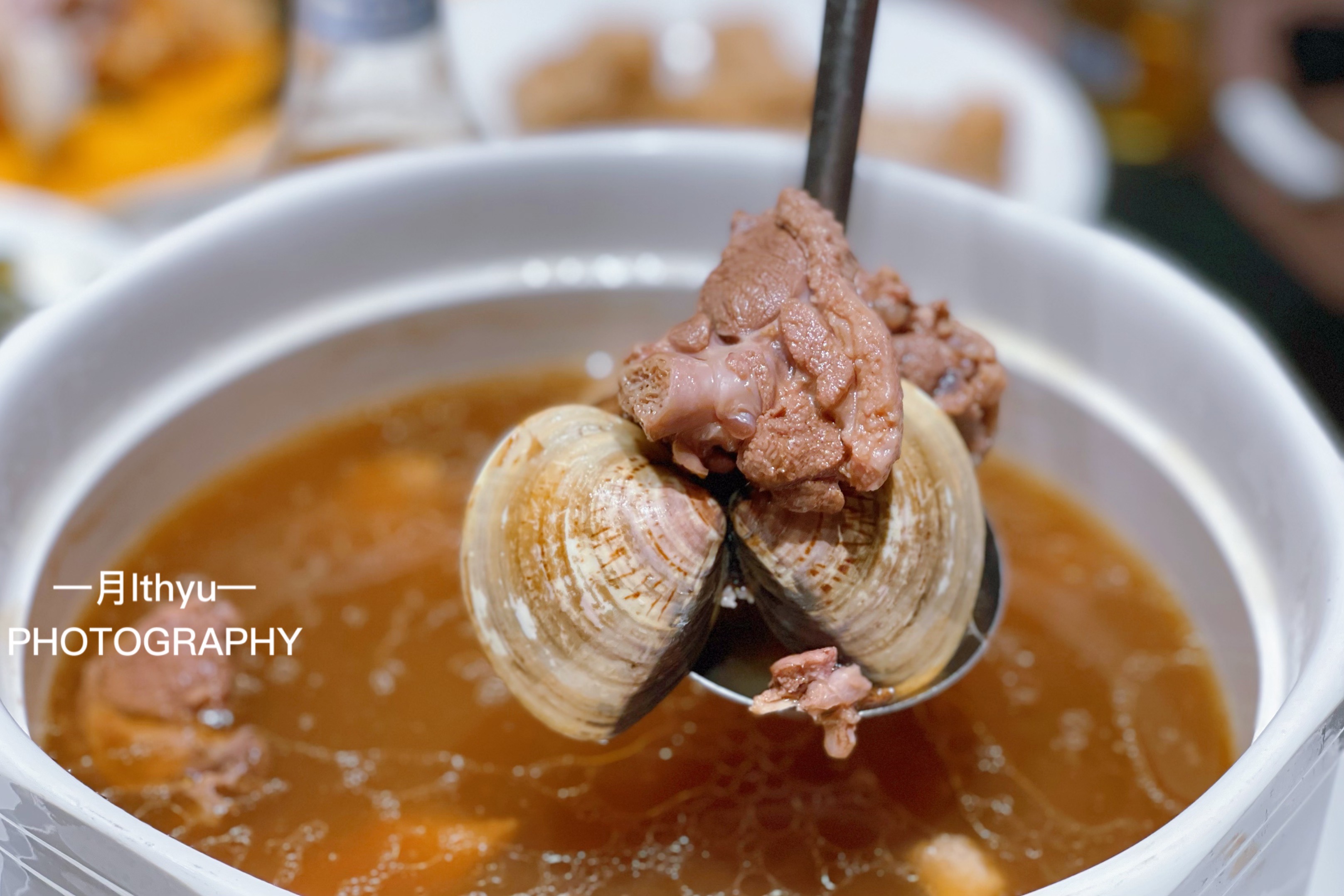文蛤老鸭黑蒜汤,独特的黑蒜香与老鸭、文蛤一起小火慢炖,边吃边煮,鸭与文蛤的鲜美融合一体,再加入了黑蒜的蒜香,汤浓而味美。