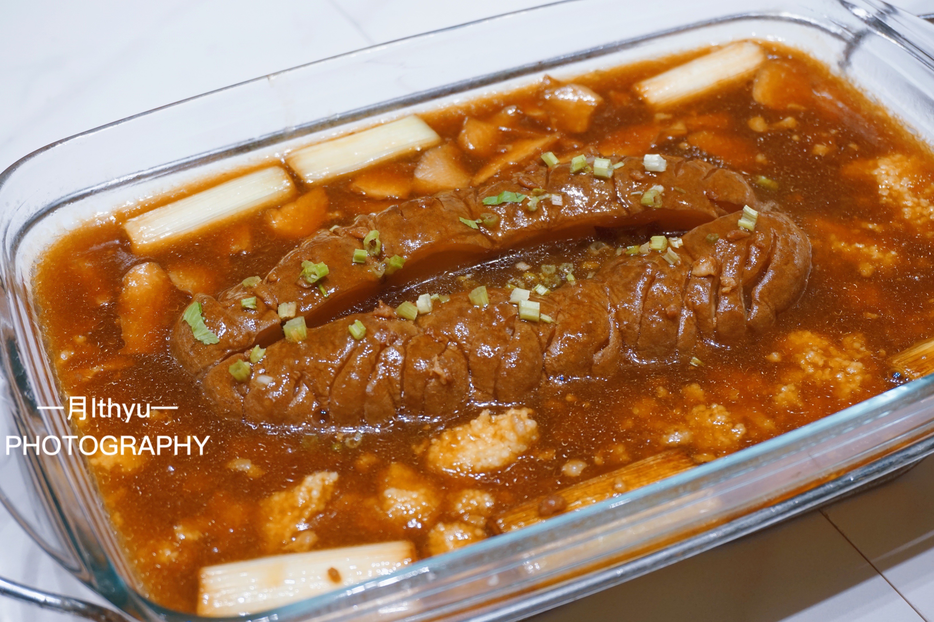 明炉黄玉参,巨大的海参,切成一圈圈的,那浓浓的胶质,美味在而滋补。