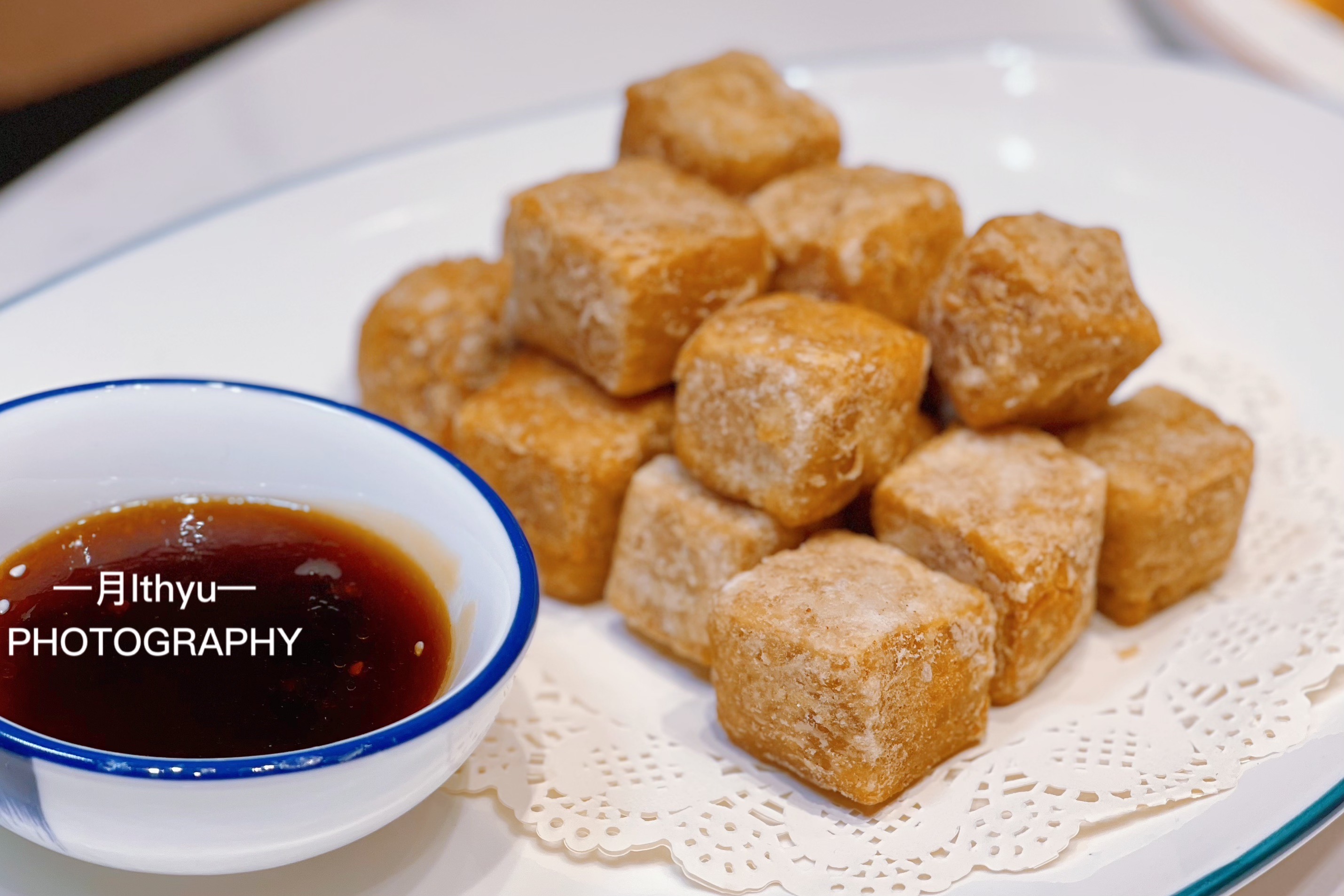 手工香芋切成方块的芋头,炸的外酥里糯,蘸点红糖汁,咸甜交织,别具风味。