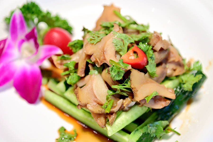 鲍汁扣特级关东参,选用特级关东参,可谓是顶级珍馐,色泽乌黑清亮,闪着诱人的光芒,口感娇嫩Q弹,自带独特清香,再用鲍汁煨至入味,堪称画龙点睛,让人久久无法忘怀。
