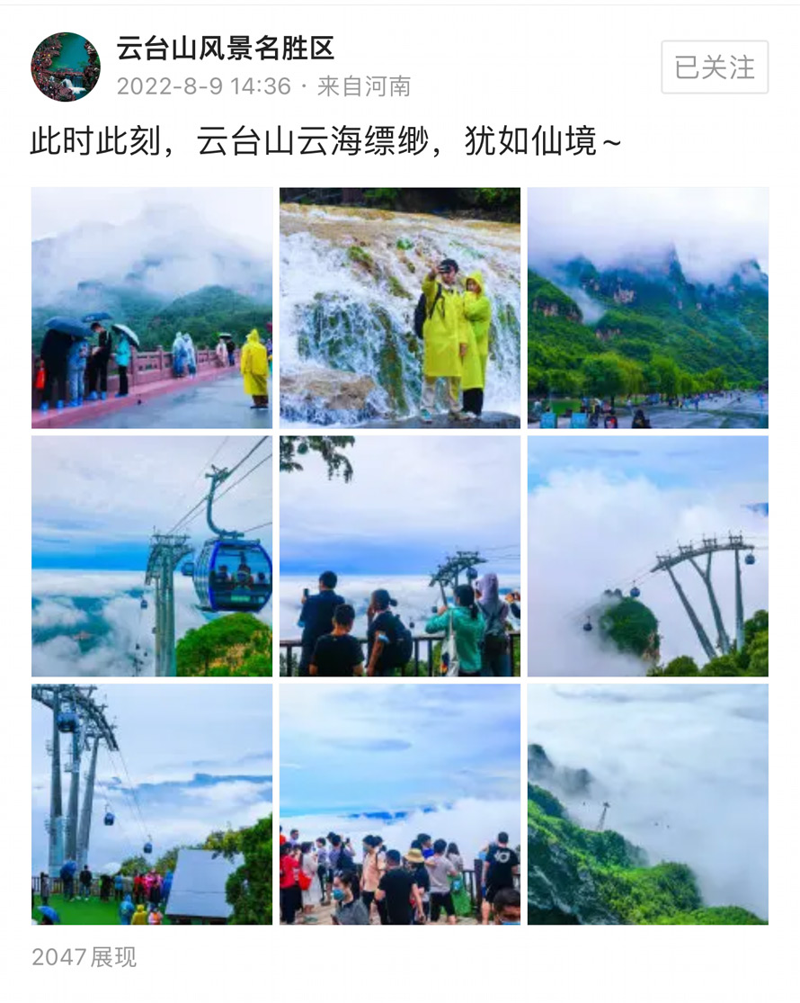 云台山景区用高糊图片宣传美景,网友:座机拍的?8月9日,河南焦作云台山风景区在社交平台发了一组图片,并配了一句文字:此时此刻,云台山云海缥缈,犹如仙境~