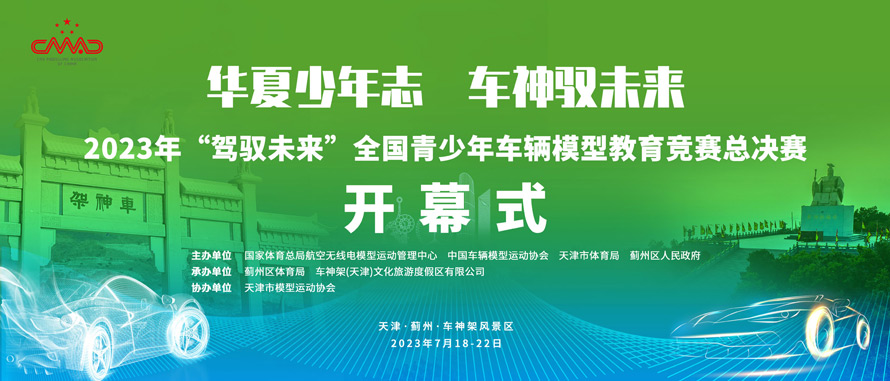 华夏少年志,车神驭未来。2023“驾驭未来”全国青少年车辆模型教育竞赛总决赛开幕式将于7月19日在天津市蓟州区车神架景区隆重举行。赛事由国家体育总局航空无线电模型运动管理中心、中国车辆模型运动协会、天津市体育局、蓟州区人民政府主办,天津车神架景区承办。