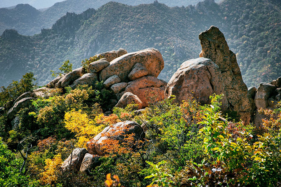 又到了大黑山醉美的季节,百里峰岭雨过泼墨,风过着色,五彩缤纷的植被令人沉醉。