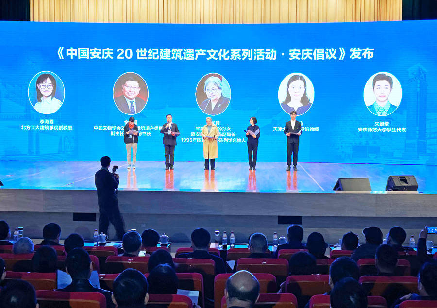 会议发布了《中国安庆20世纪建筑遗产文化系列活动·安庆倡议》,重在让安庆近现代建筑遗产在20世纪遗产及城市更新的守正创新与活化利用中绽放时代新韵。陈独秀先生的孙女、原安庆市文物局副局长、1995年陈独秀生平陈列馆创始人陈长璞莅临会议现场,她倡议“要认知安庆20世纪建筑遗产的特质”。此外,天津大学建筑学院教授戴路、北方工大建筑学院副教授李海霞、安庆师范大学学生朱继浩、中国文物学会20世纪建筑遗产委员会副主任委员、秘书长金磊逐一解读了《安庆倡议》的要点。
