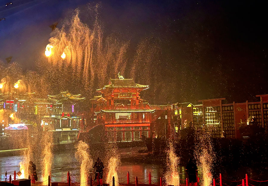 战鼓声划破长风引战马疆场驰骋,漫天星火如散花自天空而降,让夜色多了一些妩媚和遥远的苍凉……这是12月23日晚,唐山市丰南区河头老街一场实景演艺正在排练的一幕。传统民俗表演打铁花,在这里被玩出了新花样,项目利用现代科技、威亚与实景故事演绎完美结合,展现出令人回味的视觉体验。