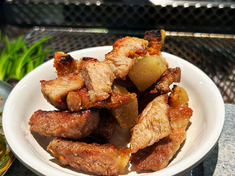 烤肉的魅力,还在于它的多样性与包容性。韩国烤肉不仅仅局限于牛肉、猪肉和羊肉,还有各种海鲜和蔬菜可供选择。鱿鱼、章鱼、虾等海鲜在烤炉上烤制后,口感鲜嫩,带有海洋的清新气息。而洋葱、青椒、蘑菇等蔬菜则为烤肉增添了一份清新的口感。这种多样性的食材搭配,使得韩国烤肉能够满足不同人的口味需求,也让它在世界各地都受到了广泛的欢迎。