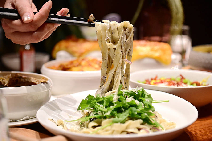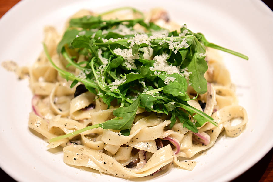 黑松露奶油宽面,面条筋道顺滑,奶油的香甜和黑松露的浓香完美结合,好吃到舔盘!