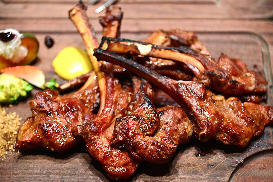 果木烤淡腌小羊排战斧,大大一块份量十足,肥嫩可口不油不腻,香浓满口毫无膻味,爱不释手!