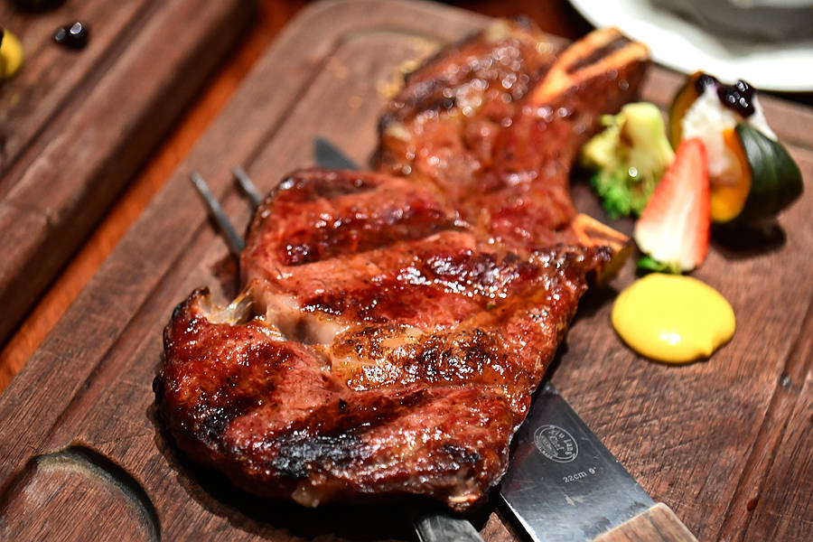 果木烤淡腌精选短柄战斧,大块厚实霸气十足,色泽油润十分诱人,肉质紧实口感细嫩,肥瘦得宜肉香浓郁,一口入魂!