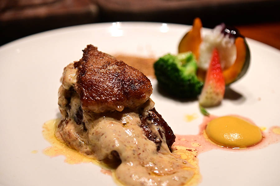 鹅肝安格斯横膈牛柳,鹅肝入口即化香醇无比,牛柳娇嫩筋道回味无穷,完美组合!