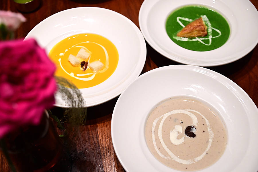 坚果金瓜汤、养颜菠菜汤、法式野菌汤,浓郁醇厚滋味不俗,每款都很好喝!