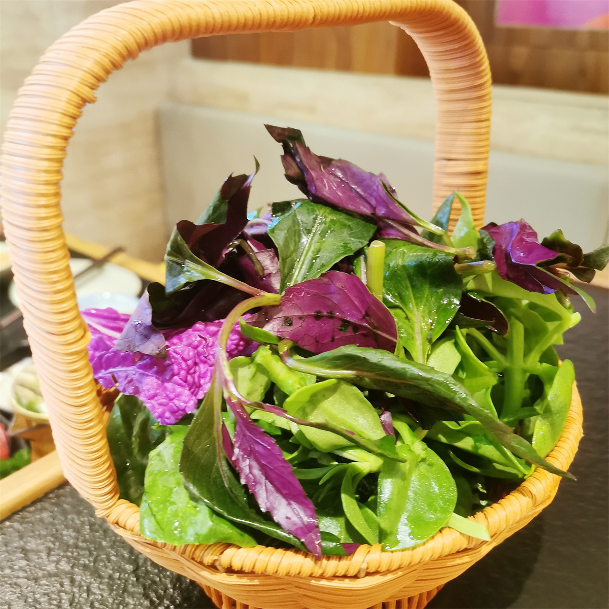 最让人惊喜的是涮菜里的时令野菜——“采之山野,食之黔味”的野菜可无限续加。羽衣甘蓝、紫背菜、芥兰苗、田七、木耳菜、紫白菜……这些来自贵州的野菜兼具“药食同源”的属性,新鲜又健康,吃起来满是自然的清香。小吃也没让人失望。清镇玉米粑粑撕开外层的玉米叶,田园的清香扑鼻而来,咬一口,香、甜、糯软在舌尖化开;炸石屏包浆豆腐蘸上香气十足的辣椒面,一口下去豆香四溢。两道小吃都带着浓郁的地方特色,让人越吃越爱。